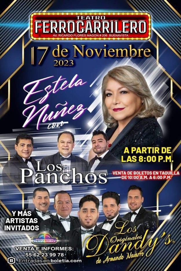 Los Dandy’s, Estela Nuñez y Los Panchos prometen una velada llena de emociones y buena música. ¡Te esperamos para vivir esta experiencia inolvidable! No faltes.