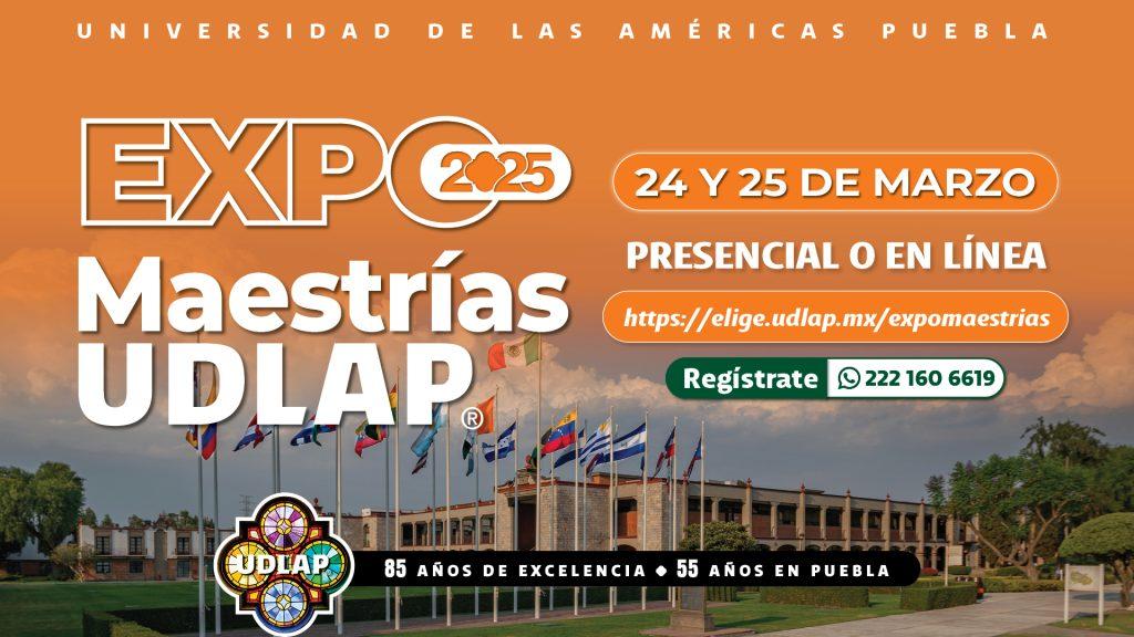 La cita para conocer a la mejor universidad privada de México, es este 24 y 25 de marzo de 16:00 a 19:00 horas. Para saber más de la Expo Maestrías UDLAP 2025 o registrarse para reservar su lugar, visite el sitio https://elige.udlap.mx/expomaestrias/, también puede escribir un mensaje de WhatsApp al 222 160 6619 para conocer los horarios, lugares y ponentes.