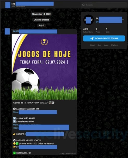 Canales de Telegram que prometen ver los partidos en vivo: Para poder disfrutar de estos eventos las grandes cadenas televisivas ofrecen una membresía o suscripción, sin embargo, muchos usuarios al querer ahorrar este tipo de costos pueden verse afectados por malware capaz de disfrazarse como una transmisión inofensiva, pero que por segundo plano ejecuta código malicioso y su objetivo es robar la información en navegadores no actualizados como contraseñas y cookies de la víctima.