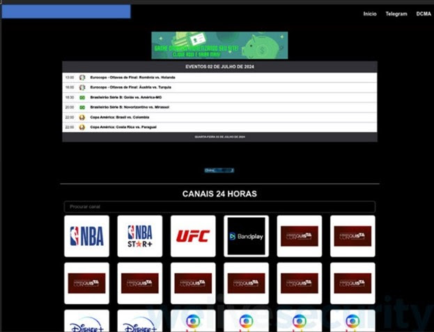 En cuanto la víctima entra al enlace principal, se encuentra con una página aparentemente normal de trasmisiones en vivo de los partidos de la Copa América 2024, como se ve a continuación: