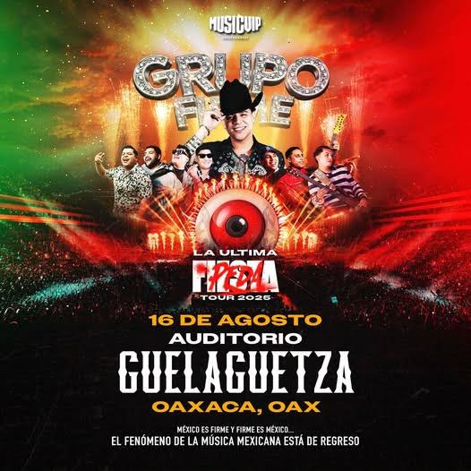 Grupo Firme se presentan el próximo Sábado 16 de agosto en el Auditorio Guelaguetza de Oaxaca, Oaxaca, a partir de las nueve de la noche. Boletos a la venta en el Sistema FunTicket.