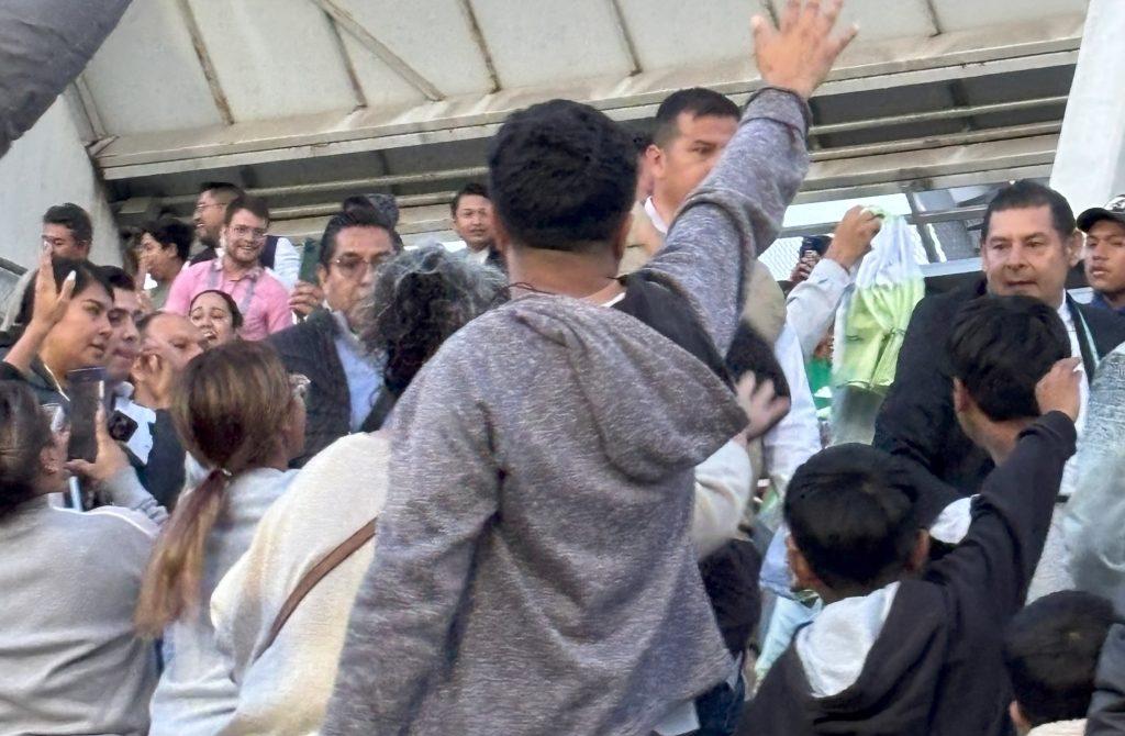 Con la presencia del Gobernador del Estado de Puebla, Alejandro Armenta, quién previo al encuentro repartió playeras y gorras a los asistentes, fue como se dió el banderazo al partido.