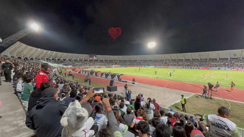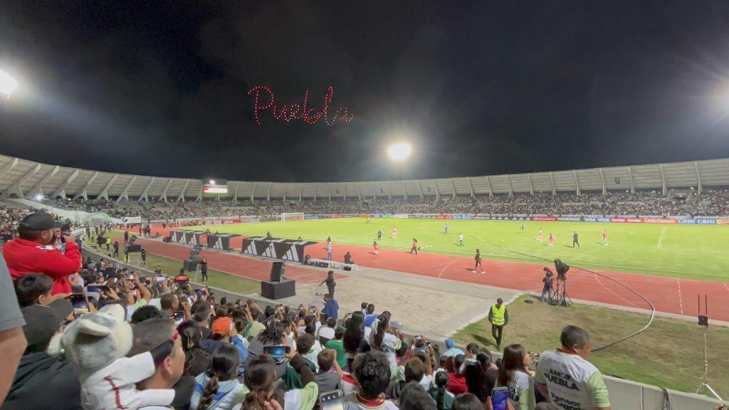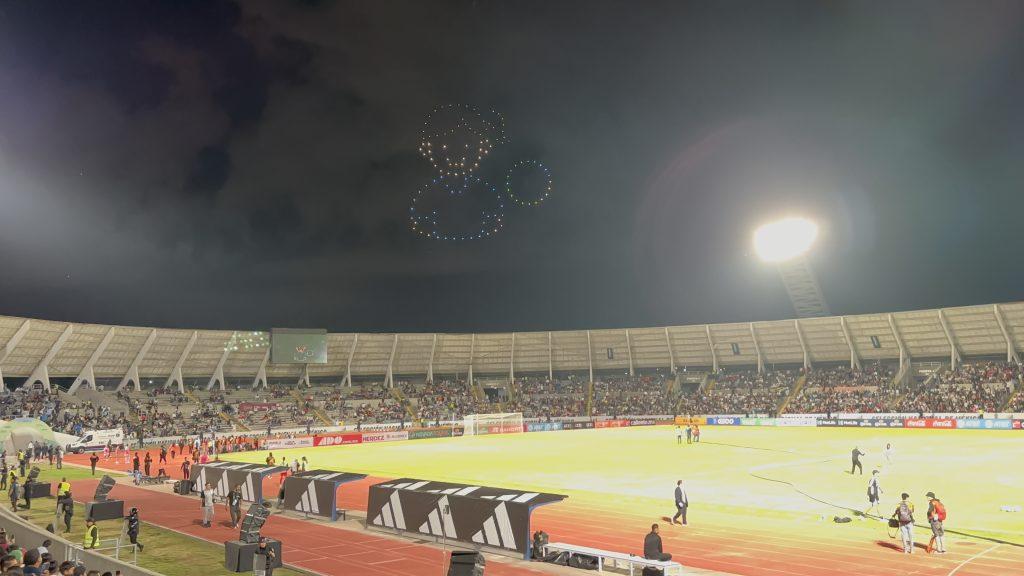 Para beneplácito de los asistentes el medio tiempo fue engalonado con un show de drones.