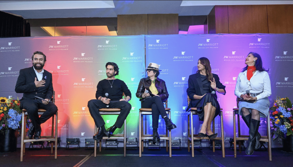 Panelistas: Alejandra Bogue, cantante, actriz, activista e ícono de la comunidad LGBTQ+, Delia González, diseñadora y promotora de la cultura mexicana, Trinidad González, actriz, Uriel Santana, fotógrafo y artista visual. Moderador: Rodolfo Mercado, gerente de marketing y comunicaciones JW Marriott Mexico City Polanco.
