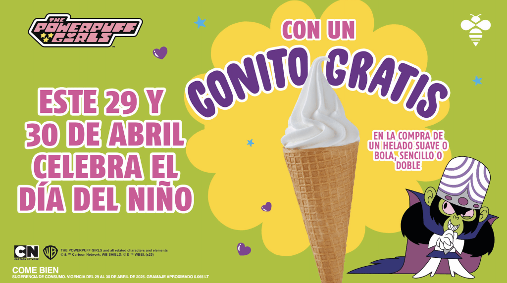 Pero la aventura no termina ahí. Para elevar la experiencia, Nutrisa presenta el Peque Pack de Las Chicas Superpoderosas, lleno de sabor, flores y muchos colores. Este paquete tiene un costo de $125 pesos y contiene un helado, librito para colorear y crayolas.